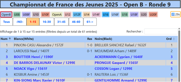 la liste des tournois (TAG). Il faut cliquer sur le tag pour afficher le