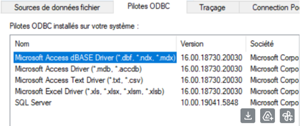 Dans l'onglet 'Pilotes ODBC' vous devez avoir :